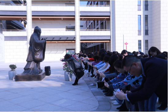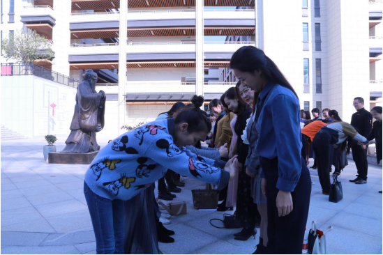种子教师启动仪式上,丁文平宣读了第二届种子计划行动方案。56对种子教师举行了庄严的拜师仪式,他们一齐郑重地向学校户外广场的孔子铜像行古典拜师礼,全体徒弟向各自师傅行礼,表达了尊师、谦虚的学习态度。导师和徒弟代表分别作了表态发言。谭志俐最后作了总结发言,对全体种子计划师傅和徒弟提出了工作要求。