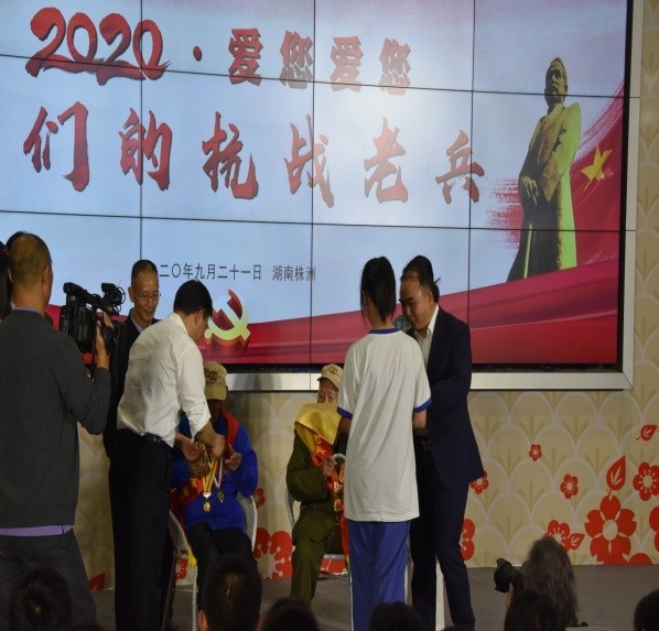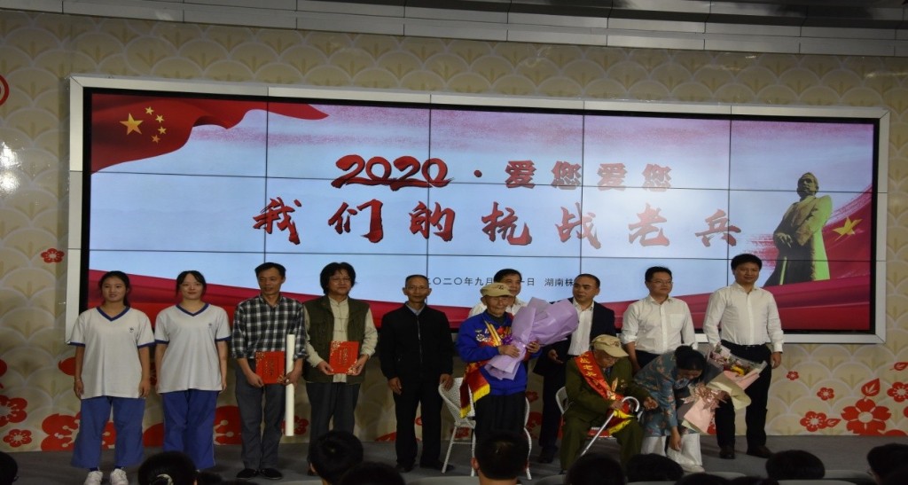 为弘扬抗战精神,铭记革命历史,加强五中学生爱国主义教育,关注抗战老兵,9月21日上午,由民革株洲市委员会、中共株洲市渌口区委统战部主办;民革株洲市渌口区支部;株洲市渌口区第五中学承办的“2020,爱您爱您——我们的抗战老兵”主题活动在渌口第五中学报告厅隆重举行。