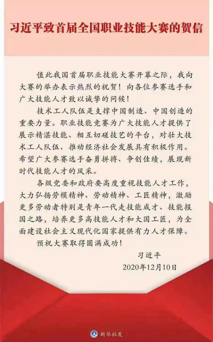 12月10日,万众瞩目的中华人民共和国第一届职业技能大赛在广州盛大开幕,本次大赛是新中国成立以来,规格最高、项目最多、规模最大、水平最高的综合性国家职业技能赛事。中共中央总书记、国家主席、中央军委主席习近平发来贺信,中共中央政治局常委、国务院总理李克强作出批示。