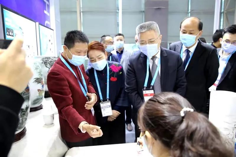 朱忠明副省长和唐白玉厅长观看陶艺展示