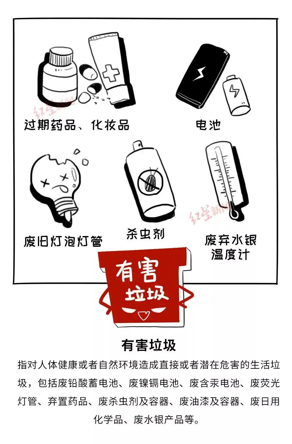 有害垃圾:指对人体健康或者自然环境造成直接或者潜在危害的生活垃圾,包括废铅酸蓄电池、废镍镉电池、废含汞电池、废荧光灯管、弃置药品、废杀虫剂及容器、废油漆及容器、废日用化学品、废水银产品等。