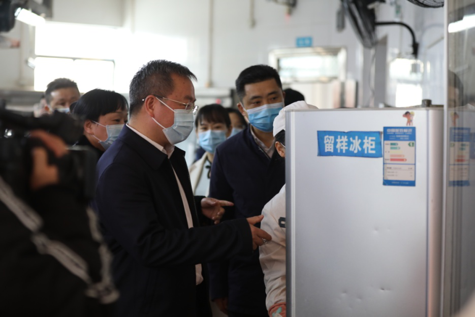 杨胜跃一行查看食品留样情况