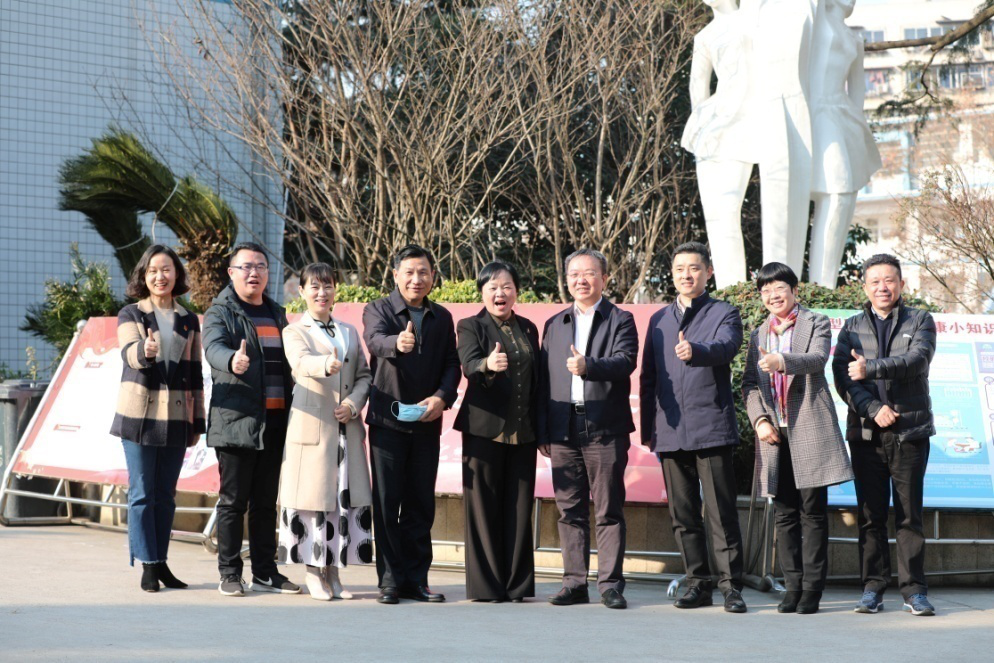 杨胜跃一行在学校前坪合影
