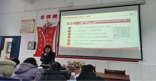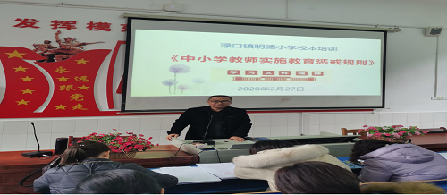2021年新学期即将开启征程,教育部出台的《中小学教师教育惩戒规则》将于3月1日起实施。按照渌口区教育局的部署,渌口镇明德小学于2021年2月27日下午组织全体教师集中学习《中小学教师教育惩戒规则》。