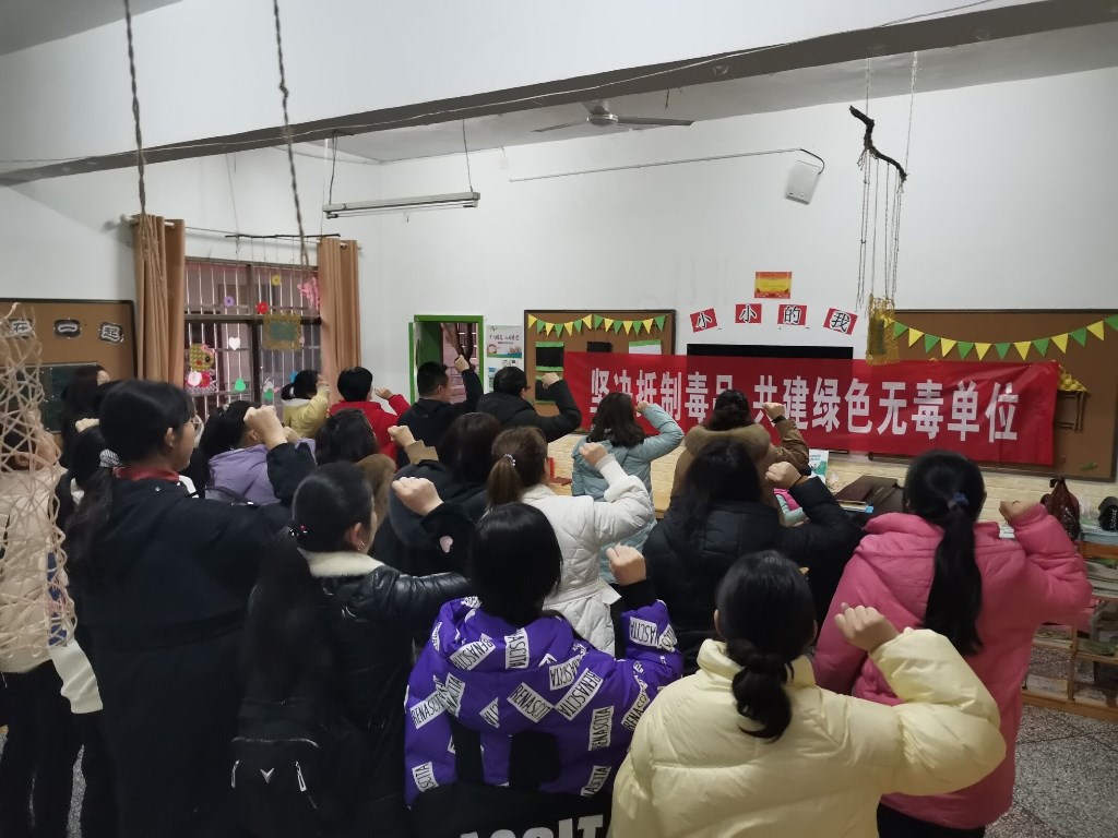 活动开展期间,我园通过在园内电子显示屏滚动禁毒宣传标语;召开专题会议、组织教职工学习毒品知识,让全体教职工了解新型毒品基本常识及其严重危害,自觉抵制引诱,绝不参与涉毒活动;在3月8日举行的全体教职工会议上,我园开展了"坚决抵制毒品 共建绿色无毒单位"的集体宣誓和签名活动,进一步加强了教职工抵制毒品的意识,将我园禁毒教育和宣传推向了高潮。
