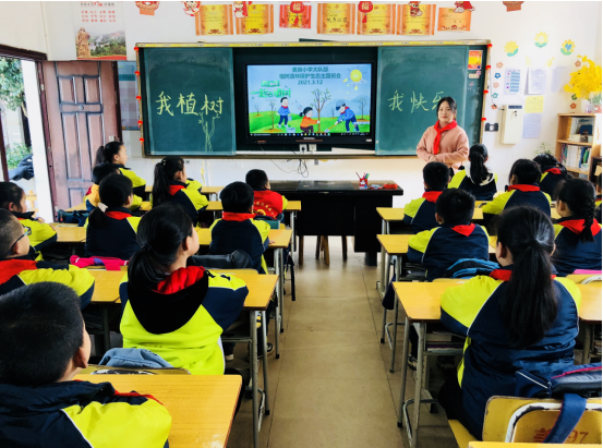 美泉小学开展了以“最美只为那片绿”为主题的植树节活动。活动开始,各中队分别召开植树造林保护生态主题班队会,辅导员给队员们解说植树节的历史、由来、意义、节徽等,示范了植树流程,强调了安全与纪律。在辅导员们的陪同指导下下,同学们有序来到学校开辟的种植区,分工合作,井然有序,挥动着锄头、铁锹,把从家中带来的小树苗、绿植、多肉等种在了校园。
