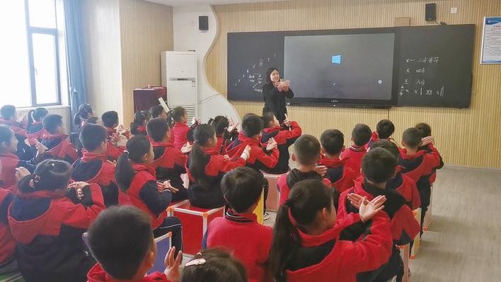 “我有一只小毛驴……”“啪啪、砰、啪啪啪、砰……”伴随着悦耳的童声,学生们手持杯子,动作整齐划一地在桌子上敲打出清脆悦耳的节拍声,再辅以拍手声为“鼓点”,一首儿歌《小毛驴》瞬间律动感十足。讲台上,音乐教师黄君跟着学生一起,大声领唱歌曲。
