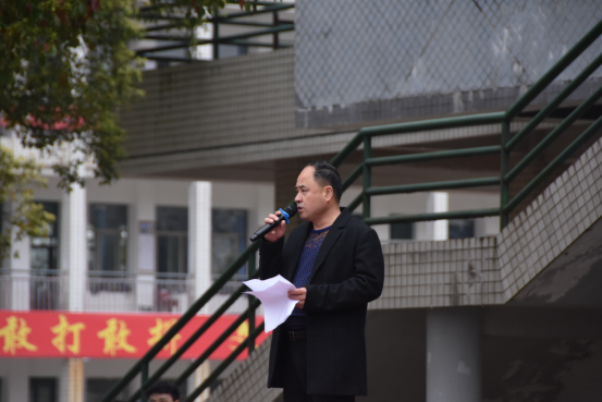 政教处副主任伍春祥作主题讲话:毒患猛如虎,禁毒靠大家!呼吁大家携起手来,抵制毒品,打击犯罪,共同营造一个无毒的、和谐的校园环境。