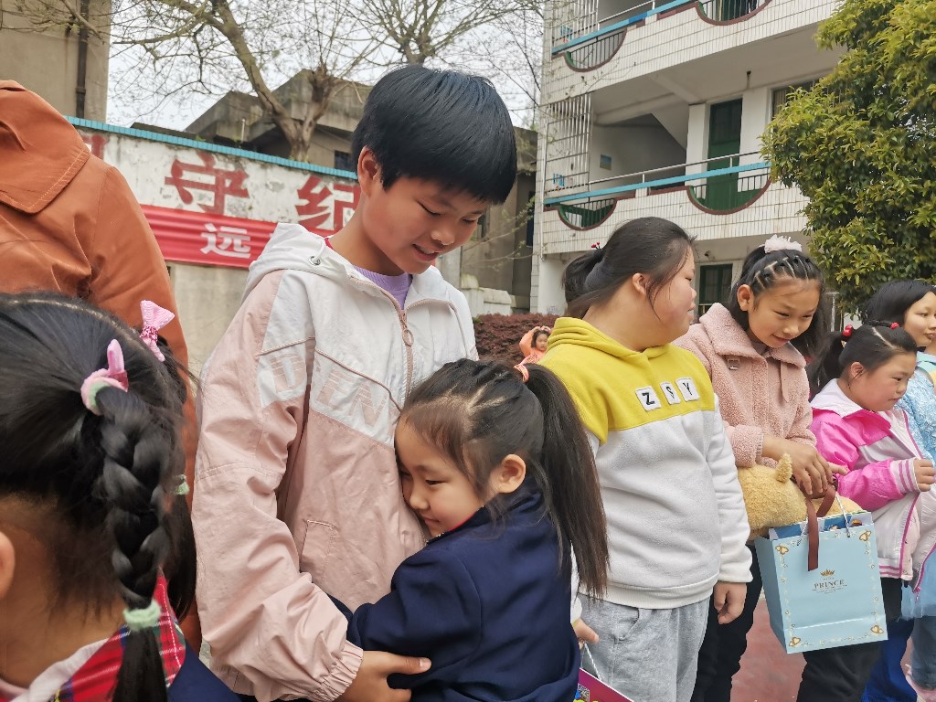 表演结束后,幼儿将自己喜爱的小礼物送到哥哥姐姐手中,有好看的绘本、学习用品、玩具等等。希望哥哥姐姐像他们一样拥有快乐、幸福的童年。