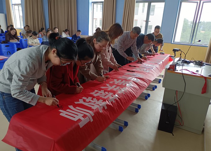 会上,主持人首先带领大家贯彻学习了株洲市教育局下发的《关于印发<株洲市中小学师德师风建设年活动实施方案>的通知》和炎陵县教育局下发的《"立师德、塑师表、铸师魂"师德师风主题教育活动实施方案》两个文件,研读了《湖南省中小学教师违反职业道德行为处理办法》、《新时代中小学教师职业行为》、《中小学教育惩戒规则》等法规,认真领悟文件与法规,对师德师风学习教育活动进行详细的部署。接着,学校校长杨爱香作了《立师德、塑师表、铸师魂,做最美芙蓉老师》的主题讲座。杨校长强调,全体老师要时刻提醒自己是"人类灵魂的工程师",带头坚定理想信念,带头加强道德修养,带头提升学识,带头拥有仁爱之心,真正做到学为人师、行为世范的"四有"好教师;要求全体教师要充分认识加强师德建设的重要意义,积极践行"崇真、尚美"的芙蓉精神,认真剖析自我、查摆问题,团结协作、做到优势互补,不断增强投身教育事业的自觉性,牢固树立为人师表形象。最后,杨校长对全体教师提出三点希望:一是做一个有爱心的人,用自己的实际行动来守护学生的健康,使学生快乐成长;二是做一个自律的人,严守底线、不踩红线,利用好"八小时"之外的时间提升素养与能力;三是做一个创新的人,学习教育新理念,改进教育方法,不断提升教育教学质量。最后,全体教师进行"廉洁从教"集体宣誓,并签订公开承诺书。