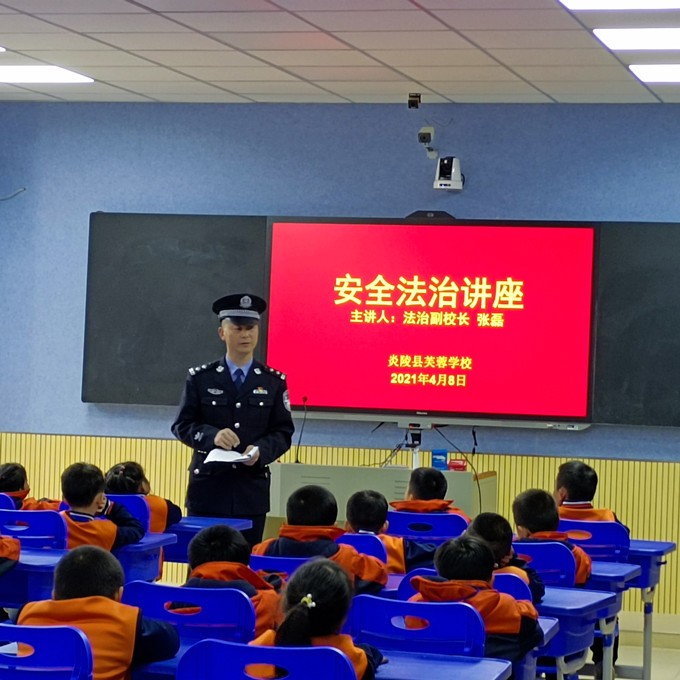 为增强师生的法治安全意识,切实提高学生的自我保护能力,为学生创造一个良好的学习环境,4月上旬,炎陵县霞阳镇派出所副所长、学校法治副校长张磊应邀来到炎陵县芙蓉学校,在学校录播室上了一堂生动的法治安全教育课,全校师生通过校内网络进行了观看、学习。