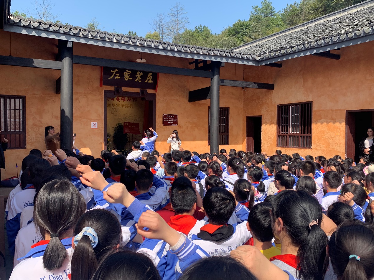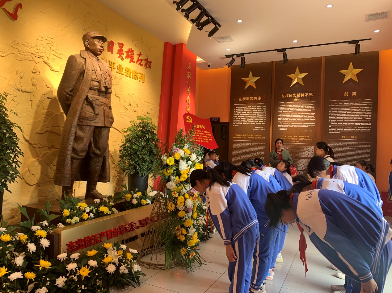 在左家老屋,师生们聆听了左权将军的红色故事,高唱少先队队歌,重温入队誓词,有序参观了左权将军曾生活过的地方。
