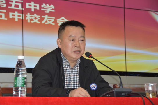 校友会会长苏虎讲话:我们都是从五中走出来的,我们对母校都有着特殊的情感。作为会长,我会紧密加强学校与校友的联系,集结力量来支持五中,为五中加油。鼓励学生成为一个品德高尚,能力超群,顶天立地的人!