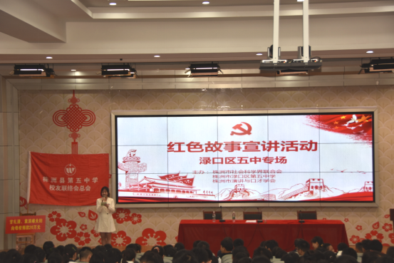 为了推动党史学习教育融入立德树人过程,引导师生厚植爱党爱国情,2021年4月10日,株洲市渌口区第五中学开展红色故事宣讲活动,株洲市演讲与口才协会志愿者为全体高一学生带来了五个感人肺腑、潸然泪下的红色本土故事。