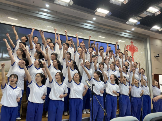飞扬的歌声,吟唱难忘的岁月; 熟悉的旋律,演绎时代的激越。每一个音符都激荡着华夏儿女,每一首歌曲都为妆点盛世中华。高一学子用积极饱满的热情和高亢嘹亮的歌声,唱响对党和祖国的深切热爱与祝福!在此,五中祝愿祝福祖国繁荣昌盛!