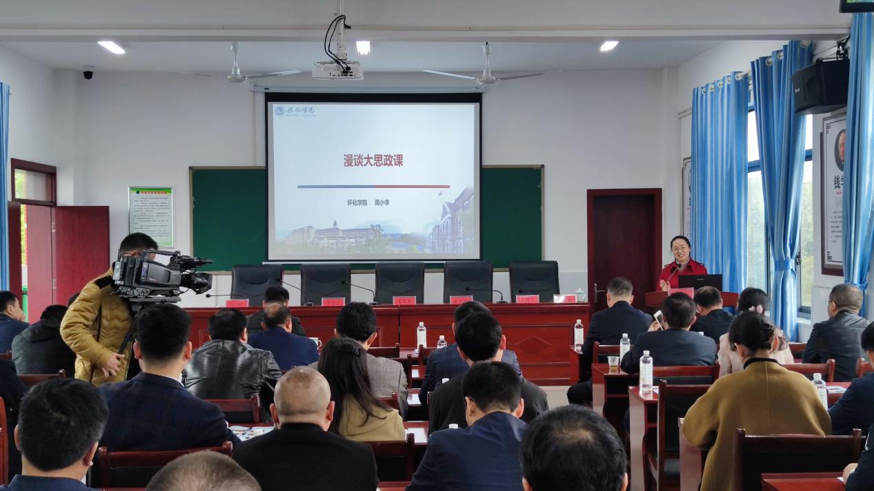 周小李作《漫谈大思政课》专题讲座。她从"何谓大思政课"、"如何上好大思政课"做了深度讲解。周小李认为,大思政课,是从大历史观、大系统观、大视野的宏阔视域引导学生立德成人、立志成才,树立正确"三观",坚定"四个自信",把爱国情、强国志、报国行自觉融入坚持和发展中国特色社会主义事业、建设社会主义现代化强国、实现中华民族伟大复兴的奋斗之中的马克思主义理论课程,是为党育人,为国育才的关键课程。要上好大思政课,第一要掌握课程价值、课程建设、课程方法的设计原则,做到政治性和学理性相统一、价值性和知识性相统一、建设性和批判性相统一、理论性和实践性相统一、统一性和多样性相统一、主导性和主体性相统一、灌输性和启发性相统一、显性教育和隐性教育相统一。第二是研讨实现路径。她结合醴陵地域和文化特色,给与会者指出了陶艺、烟花、将军、特色四条路径。第三要遵循"秀、瘦、透、漏、逗、诱"六字评价标准。具体为教态端正大方得体、内容结构紧凑合理、理论讲解精深透彻、留白设计恰到好处、手段方法巧妙运用、政治学理有机融合。