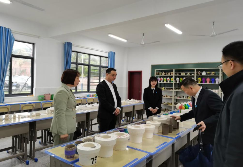 参会人员参观板杉中学劳动实践活动展示室、陶艺手工室