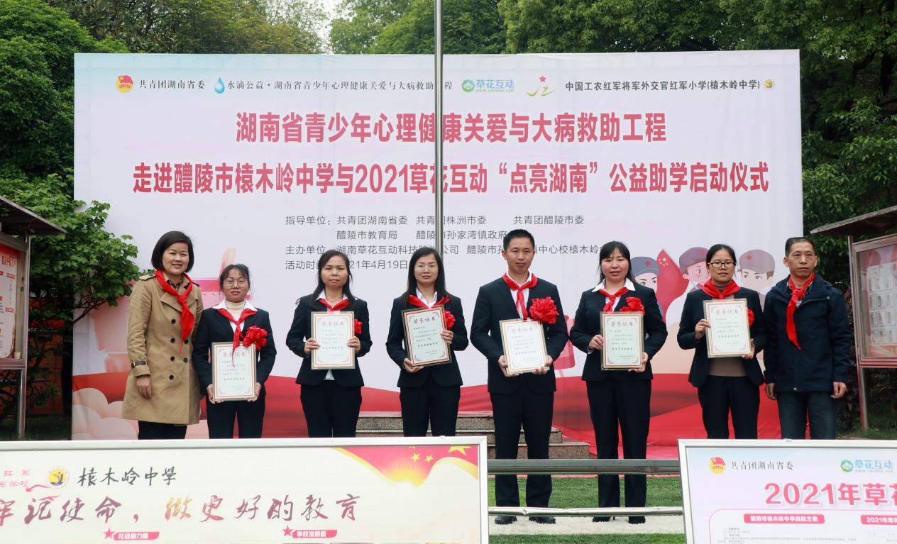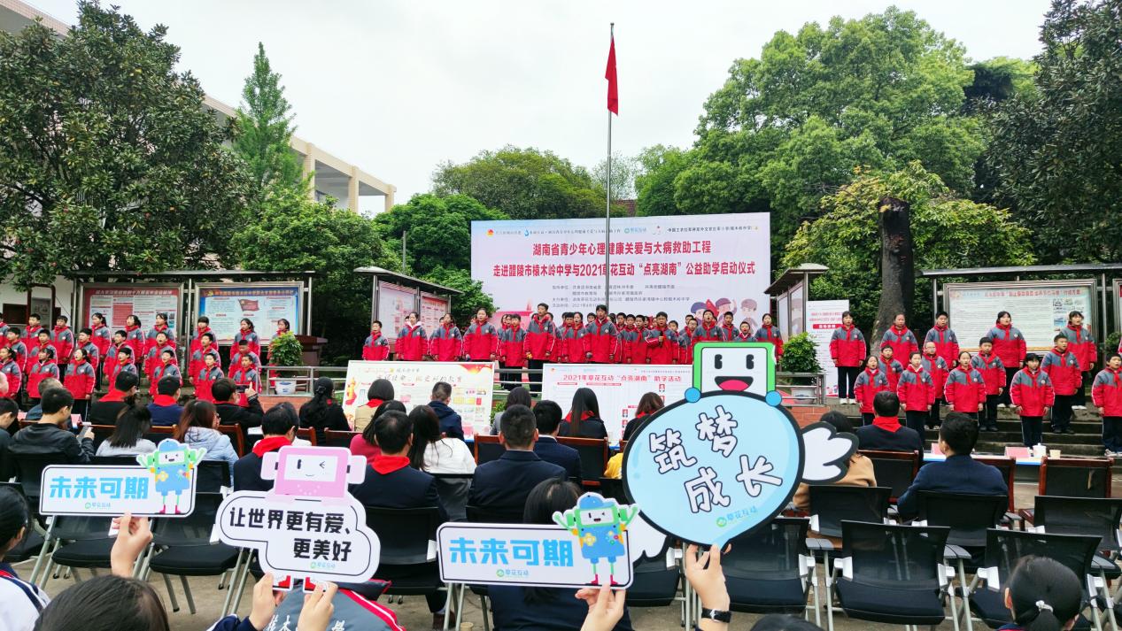 青少年的身心健康发展,受到各级领导和社会各界的广泛关注。4月19日,共青团湖南省委、湖南省希望工程、湖南省青少年发展基金会和省湘雅二医院心理关爱、草花互动"点亮湖南"公益助学团队一行来到醴陵市榬木岭中学,启动2021草花互动"点亮湖南"公益助学仪式并开展心理健康护航活动。活动由共青团醴陵市委书记朱玉婷主持。