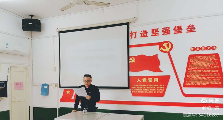 张赛辉书记宣讲结束后,支部书记张洪洲最后做总结发言。他首先感谢张赛辉书记给我们带来的精彩讲述,他总结说,我们要以这次中心校党委宣讲为契机,进一步把开展党史学习教育作为"增强四个自信"、"增强四个意识",做到两个维护的重要检验,在教学中筑牢教育初心,担牢时代重任,确保在学史明理,学史增信,学史崇德,学史力行上取得更大成效,勇挑重担,砥砺前行,我们明德人一定秉承着这股精神,在基础教育中贡献力量,为教育强国与无献奋斗,以优异成绩庆祝建党100周年。