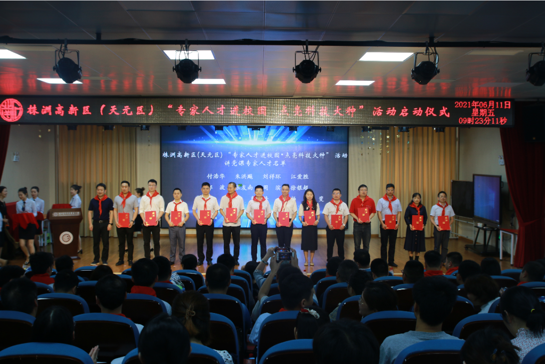 (通讯员 曾雅)为帮助青少年了解世界科学前沿趋势,发挥科技专家人才在培育时代新人、普及推广学科技术等方面的独特作用,6月11日上午,“专家人才进校园·点亮科技火种”——株洲高新区(天元区)专家人才进校园活动启动仪式在凿石小学举行。43名专家人才分别被聘请为讲党课专家和校外科技辅导员,他们将走进辖区中小学校,讲科技党课,当科技辅导员,激发学生爱科学、求真理、用创新的本能和兴趣。