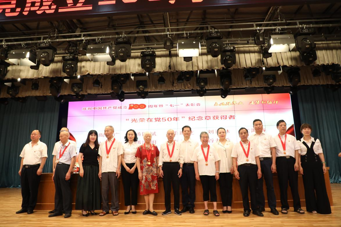 与会领导为“光荣在党50年”老党员颁发并佩戴纪念章