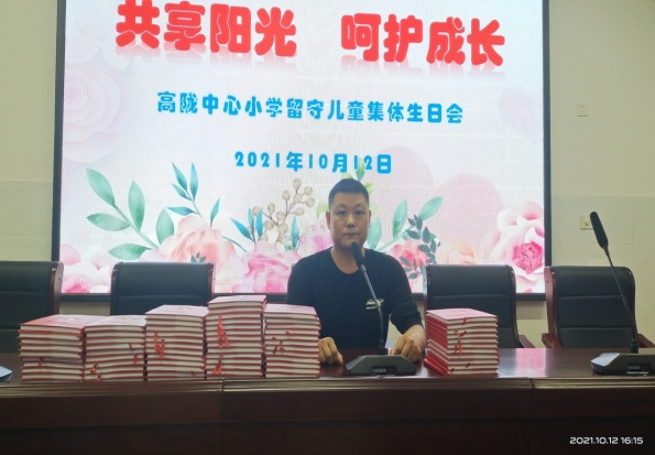 高陇中心小学于10月12日开展了“共享阳光,呵护成长”为主题的留守儿童集体生日会活动。校长袁军平给70名留守儿童送上了生日祝福和生日礼物,并鼓励他们要“自理、自立、自强”,以优异的成绩回报学校和家长,长大后为国家和社会做出更大的贡献。参加活动的孩子们无不感动,纷纷表示在学校就如同在家里一样温馨,并立志从小努力学习,长大回报社会。