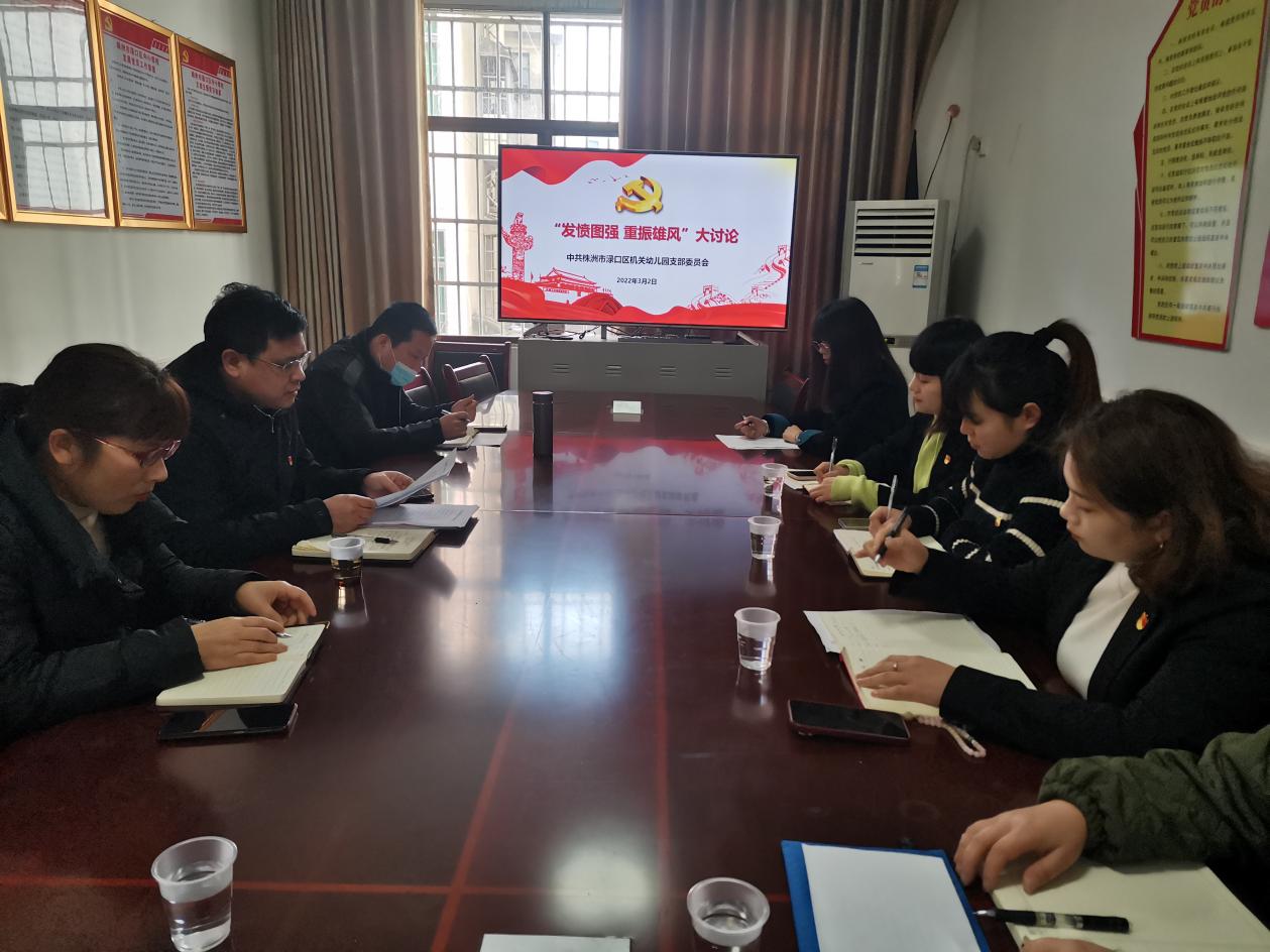 为深入学习贯彻落实省第十二次党代会精神和省委书记张庆伟对株洲"发愤图强、重振雄风"的重要指示要求,渌口区机关幼儿园党支部于3月2日上午开展"发愤图强 重振雄风"大讨论活动。