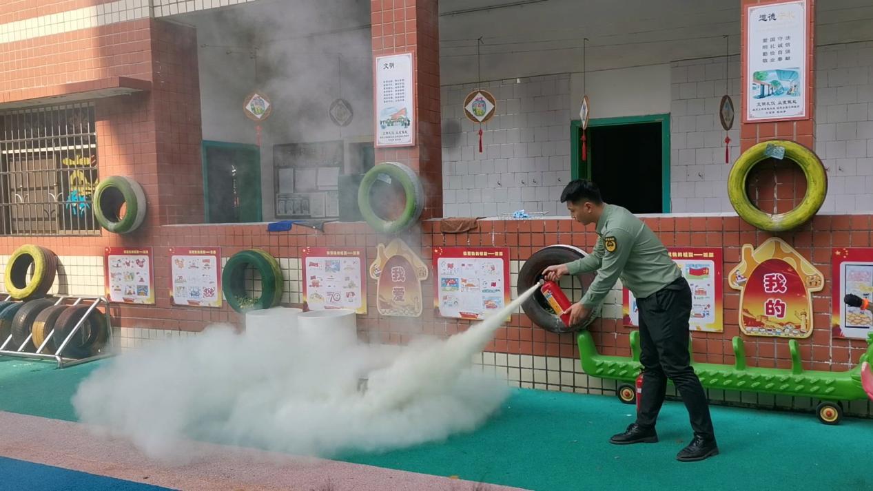 培训结束后,举行消防安全演练。当警报声响起园内,各班级幼儿在老师紧张有序的组织下,用双手捂住口鼻,弯腰低头快速有序地撤离到操场,从火警的警报声响起到幼儿全部撤离至校园安全区域集结地,历时2分10秒。演练结束后,谭路明园长对本次演练活动进行了总结点评,称赞演练活动做到了快速、安全、有序。唐教官给我们讲解起火后如何正确的使用灭火器,生动的讲解和示范,让教职工更加了解灭火器的使用。