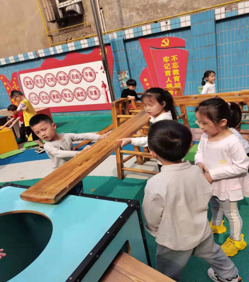 在自主游戏设计中,孩子们进行大胆想象、自主创造,愉快交流。在充满童趣的游戏区域里,各式各样的户外游戏活动器材,让孩子们置身于游戏天堂。孩子们用梯子、木板搭成的各种关卡既有挑战性又有趣味性。孩子们在游戏中不断思考、改进、调整,如何get新技能,让游戏更有味,玩得不亦乐乎。