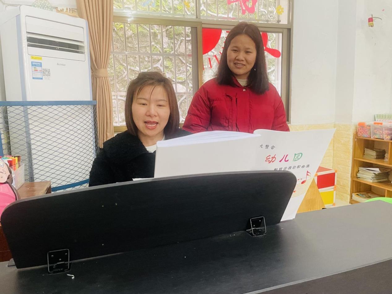 幼儿园采取"一周一曲"的任务模式对教师进行技能强化,教师们用心准备、反复练习,边弹边带孩子练习歌唱,实现师生相互交流、一起学习、共同成长。
