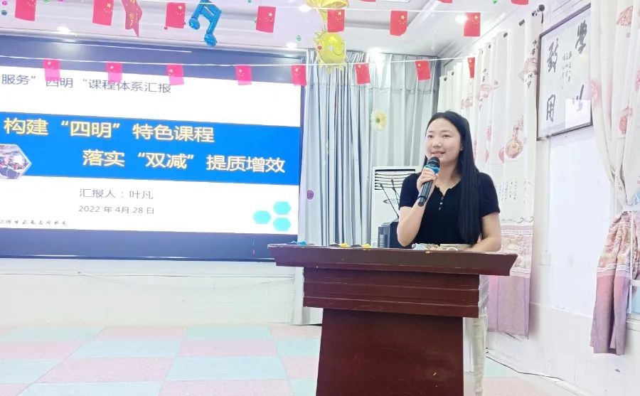 解放学校教研室叶凡主任就我校课后服务"四明"课程体系从课程背景、总体目标、"四明"课程体系内容以及课后服务体系的"1+6"要素四个方面,进行了细致、详实的汇报。叶主任表示:今后,我校将进一步完善五育并举的"四明课程"体系及相关管理制度, 拓展课后服务内容,提升课后服务质量,丰富课后服务内涵,用责任与担当把"课后服务"这份答卷书写得更扎实、更精彩,让"双减"政策继续生根校园,让这一暖心工程为学生和家长提供更优质更贴心的服务,以创新课后服务来涵养育人新生态。