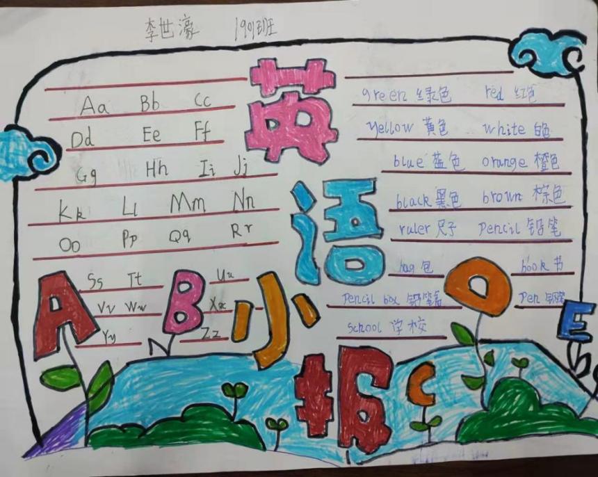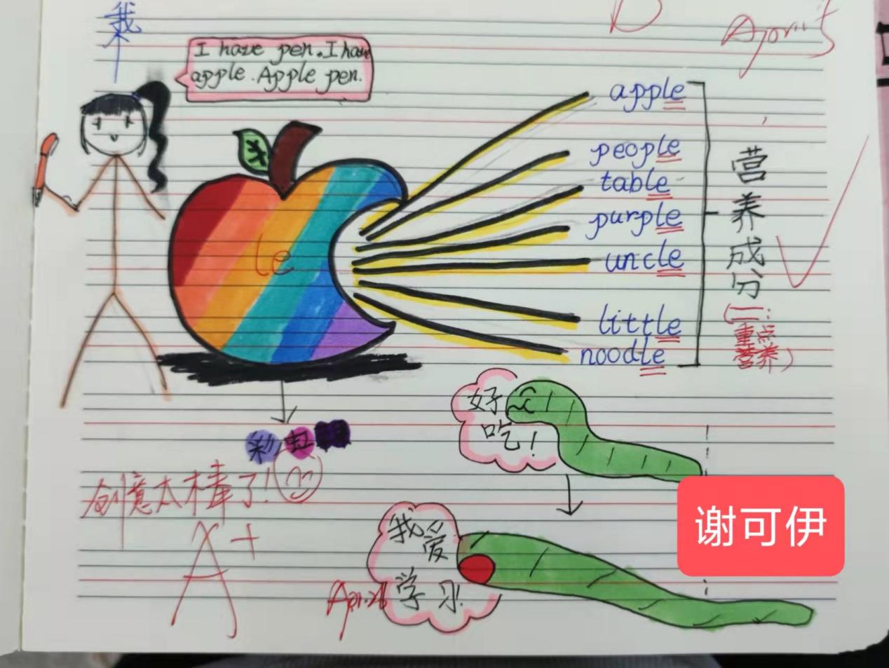英语组积极探索 "双减"作业新模式,想方设法创新作业形式,激发学生学习兴趣,提高作业质量,增加趣味性和实用性,拓宽学生的文化视野,将孩子们快乐学习、幸福成长作为努力的方向。为增强各年级学段学生英语学习兴趣,推动学生乐学创新,英语组将趣味性、激励性、竞赛性融入英语学习中。如,为低年级段学生设计了单词卡片字母乐园、主题手抄报等作业,通过作业帮助学生增强对相关知识的感知与记忆,并适时地进行梳理和归类;