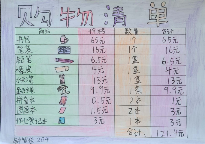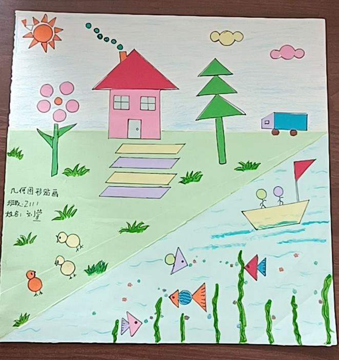 数学组根据不同年级的学情与认知水平,推出"双减"个性作业单,保证学校教育的"减负"与"高质"。如,为低年级段学生设计几何图形贴画、购物清单、活动角;