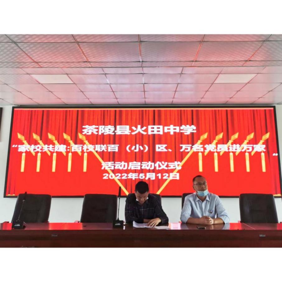5月12日,茶陵县火田中学党支部携手火田镇五门村党支部,启动了本次"家校共建:百校联百(小)区、万名党员进万家"活动。