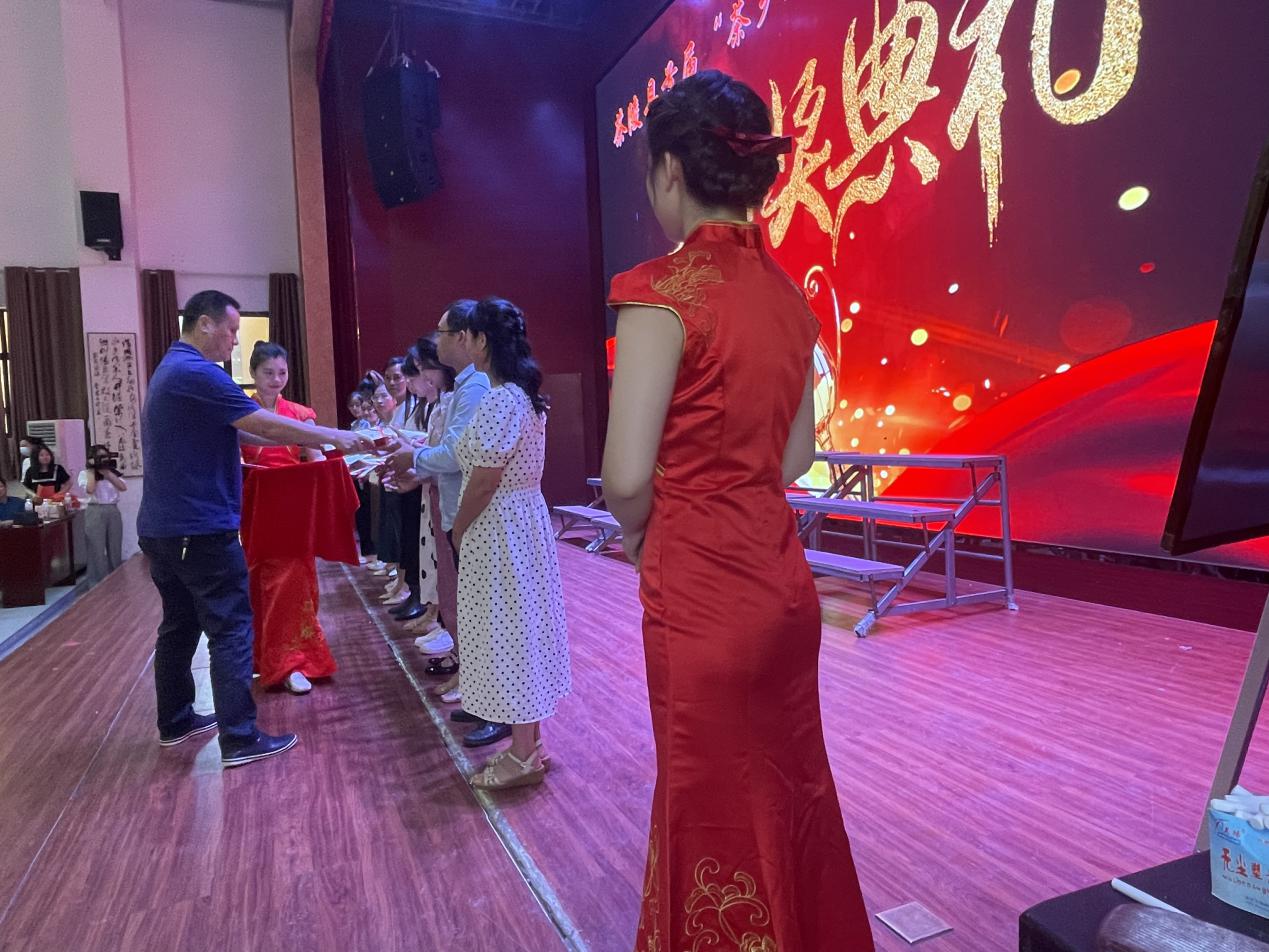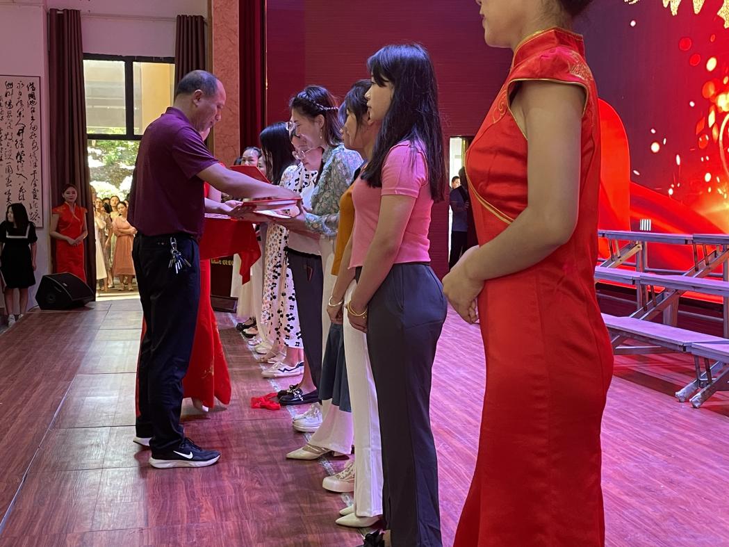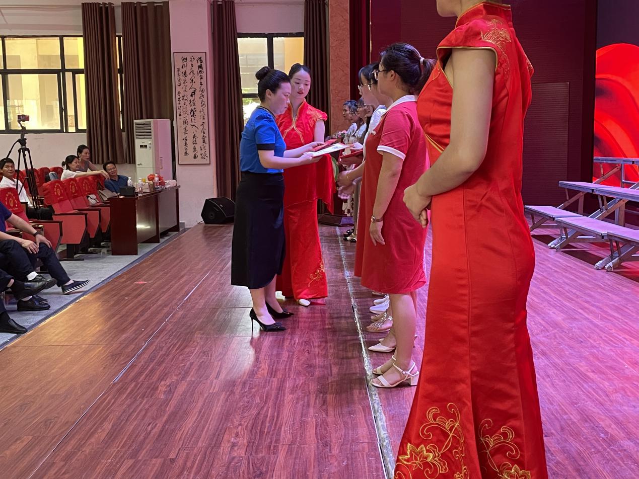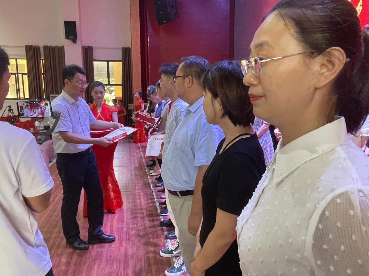 教育局党委副书记、副局长欧阳红勇为小学、初中、高中阶段二等奖获奖教师颁奖