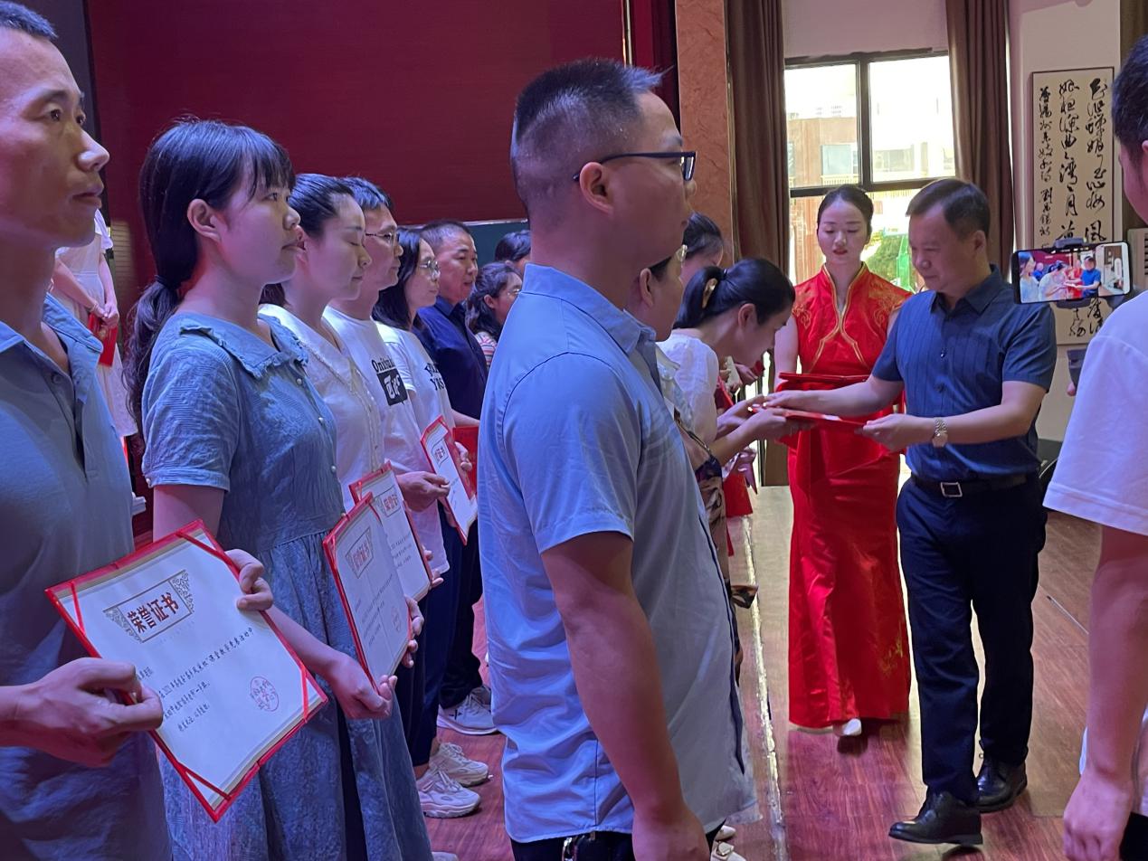 县人民政府副县长彭永强为初中阶段一等奖获奖教师颁奖