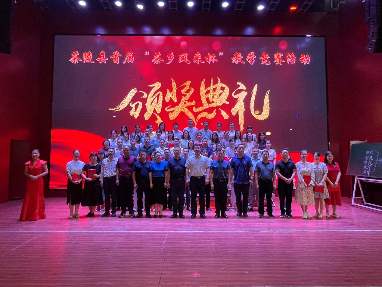 茶陵县首届"茶乡风采杯"课堂教学竞赛活动历时近2个月,经过学校初赛、片区复赛、县级决赛激烈比拼,最终评选出一等奖18个,二等奖41个,三等奖26个。此次竞赛有力推动了茶陵县教研共同体的发展,进一步激发广大教师的教研热情,通过对年轻教师的指导、培养,加强了优秀教师队伍建设,助推了教育事业发展。隆重的颁奖活动营造了尊师重教的良好氛围,激励追求卓越教学的内生动力,增加教师的职业认可感、获得感、成就感。