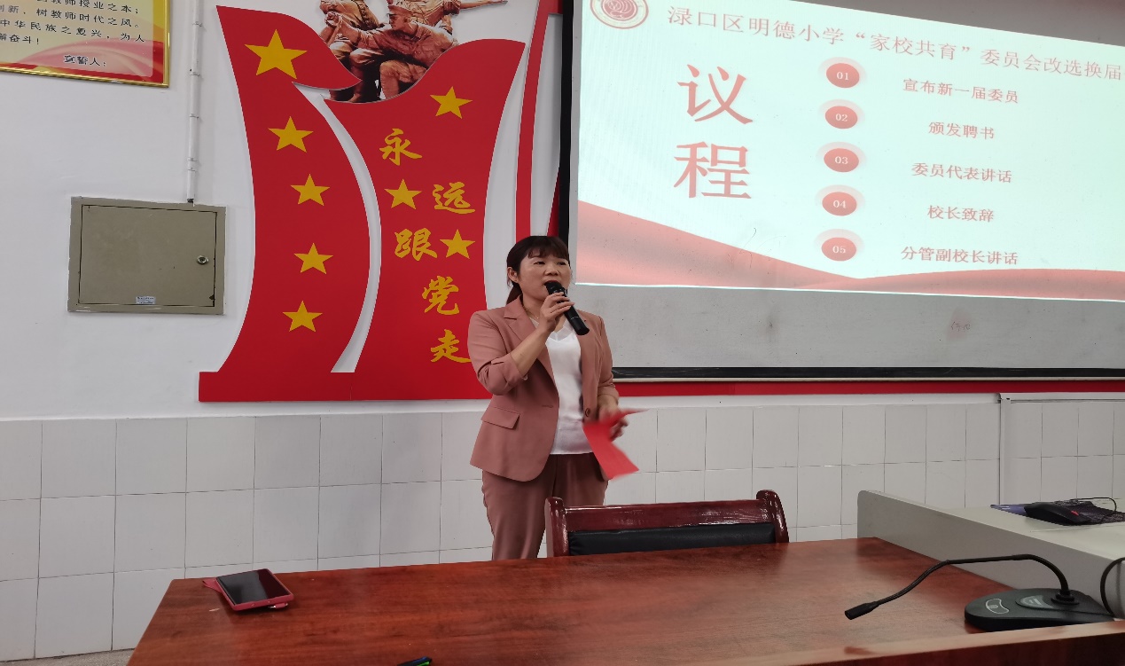 "我们因孩子齐聚一堂,我们因教育携手同行"。之后,学校进行了明德小学"家校共育"委员会改选。