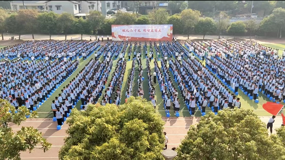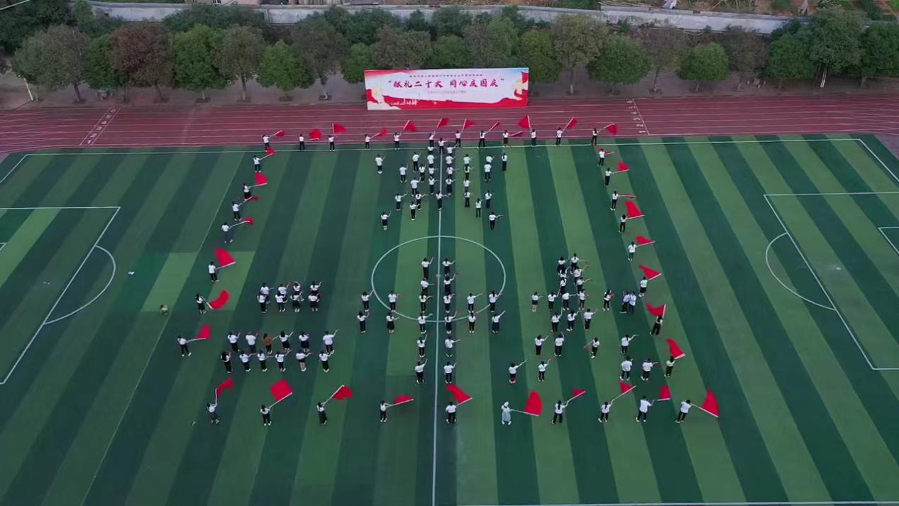 有一首歌,叫"没有共产党就没有新中国",全场2500余名师生挥舞国旗,在操场同声高唱《没有共产党就没有新中国》,为新中国73岁生日献礼。为"献礼二十大 同心庆国庆"主题活动拉开了帷幕。