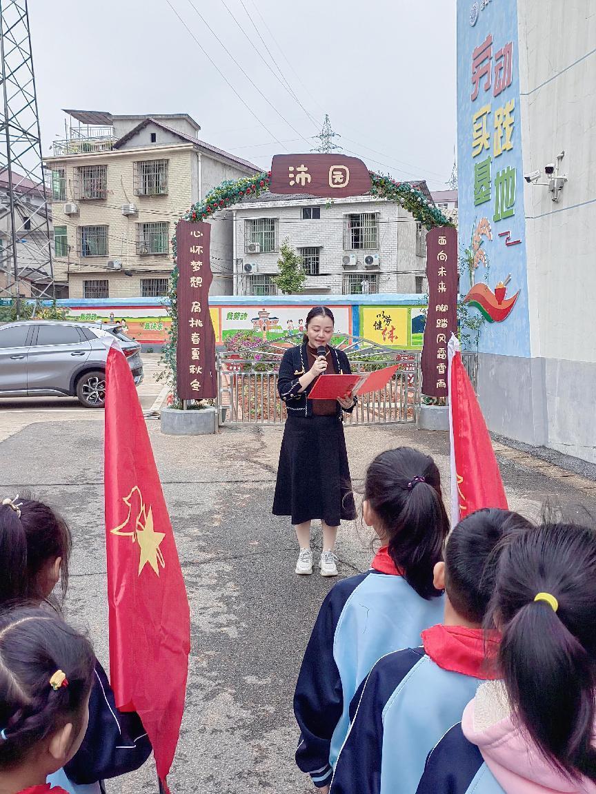 为了全面深入贯彻落实《中共中央国务院关于全面加强新时代中小学劳动教育的意见》和教育部《大中小学劳动教育指导纲要(试行)》的文件精神,渌口区明德小学以"五育并举"为内核,发挥劳动教育在立德树人方面的重要作用,把劳动实践教育贯穿人才培养全过程,2022年10月28日下午,渌口区明德小学隆重举行校内劳动教育实践基地"沛园"秋季开园仪式,全体行政人员和教师、家长、学生代表150余人参加了活动。开园仪式由彭庆主任主持。