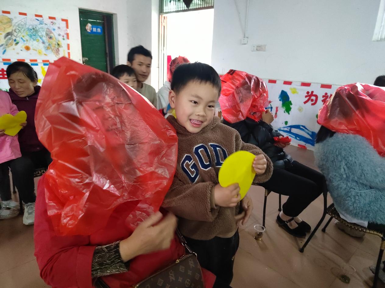 然后,亲子游戏《开盲盒寻妈》将本次家长会推向了高潮。家长头套塑料袋,不发出异样声音,安安分分地坐在椅子上等待。考验孩子们眼力见儿的时刻到了!只见孩子东瞅瞅西看看,认真观察家长的服装、鞋子等特点,迅速锁定目标,冲过去揭开塑料袋,立刻欢呼雀跃起来,"我找到啦!""这是我的妈妈!"马上献上自己亲手制作的礼物,并轻声地在家长耳边说:"妈妈,您辛苦了!祝您节日快乐!"暖暖的爱意随亲子舞蹈《有你就幸福》缓缓流淌,一个又一个的拥抱将温情传递到每个人的心中。
