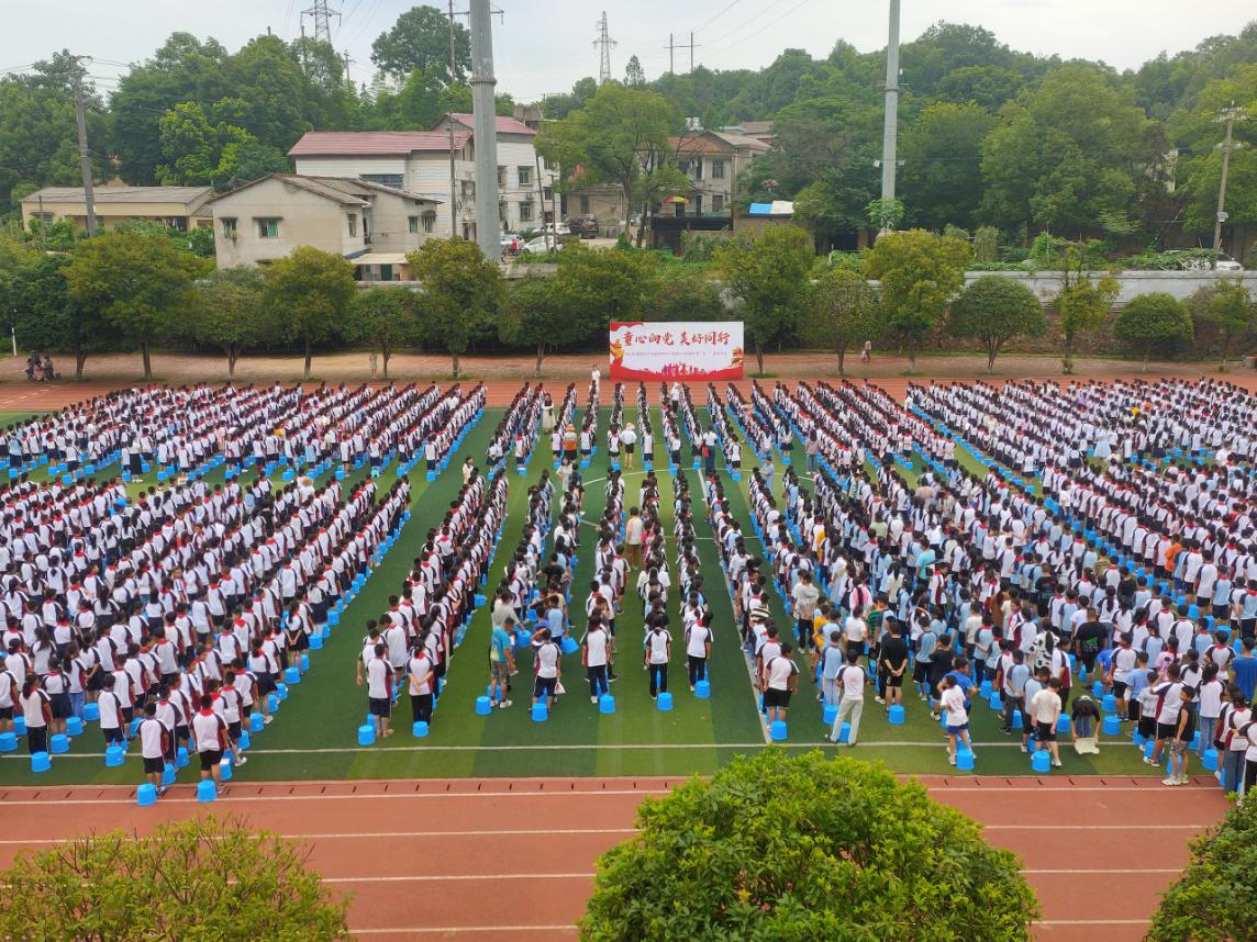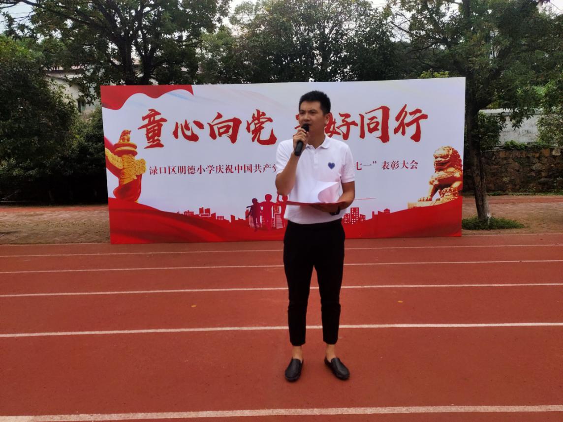 休学典礼在庄严的升旗仪式中拉开了帷幕。典礼上,学生成长中心副校长谭尧宣布了夏宗华、晏永丰等6名教师获得了"优秀共产党员"荣誉称号、谭承书、易慧等16名教师获得了"明星班主任"荣誉称号;接着还表彰了一批"优秀大队干部"、"优秀值日生"。同时她还布置了"社区服务""家务劳动""绳彩飞扬"等暑期作业;她希望全体师生秉承明德精神,在暑假继续奋发有为,争做文明进取的明德人。