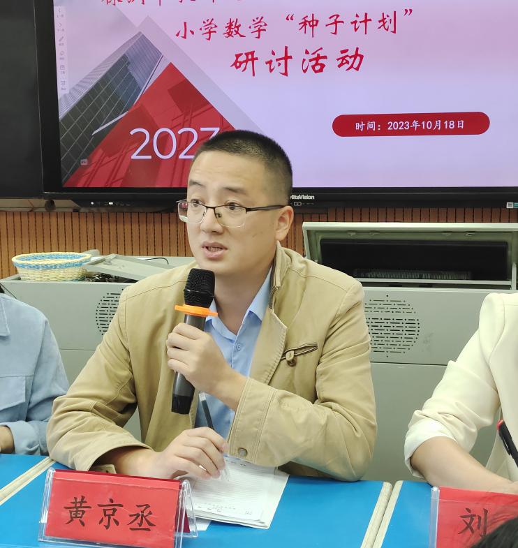 课后由专家团队对两位种子教师的课例进行现场点评,黄京丞导师老师高度赞扬了颜老师的课能把握新课标,具有大单元、大概念的教学理念,有结构化的教学意识;注重新知和旧知的关联,课堂上气氛活跃,学生参与度高;以学生为主体,充分发挥了学生独立思考、合作交流的水平。本节课还进行了知识的延伸,为学生学习初中数学知识进行有效衔接。