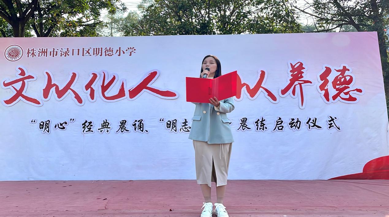 ——渌口区明德小学"明心"经典晨诵 "明志"强身晨练启动仪式