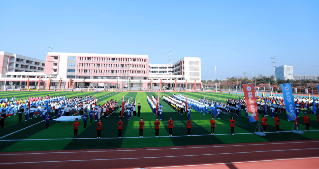 开幕式现场,在激昂的乐曲中,各学校运动员排着整齐的队伍,沿着操场红色跑道有序入场。他们士气高昂、精神抖擞,步伐整齐有力,口号自信嘹亮,多维度展现了荷塘学子的青春活力和精神风貌。