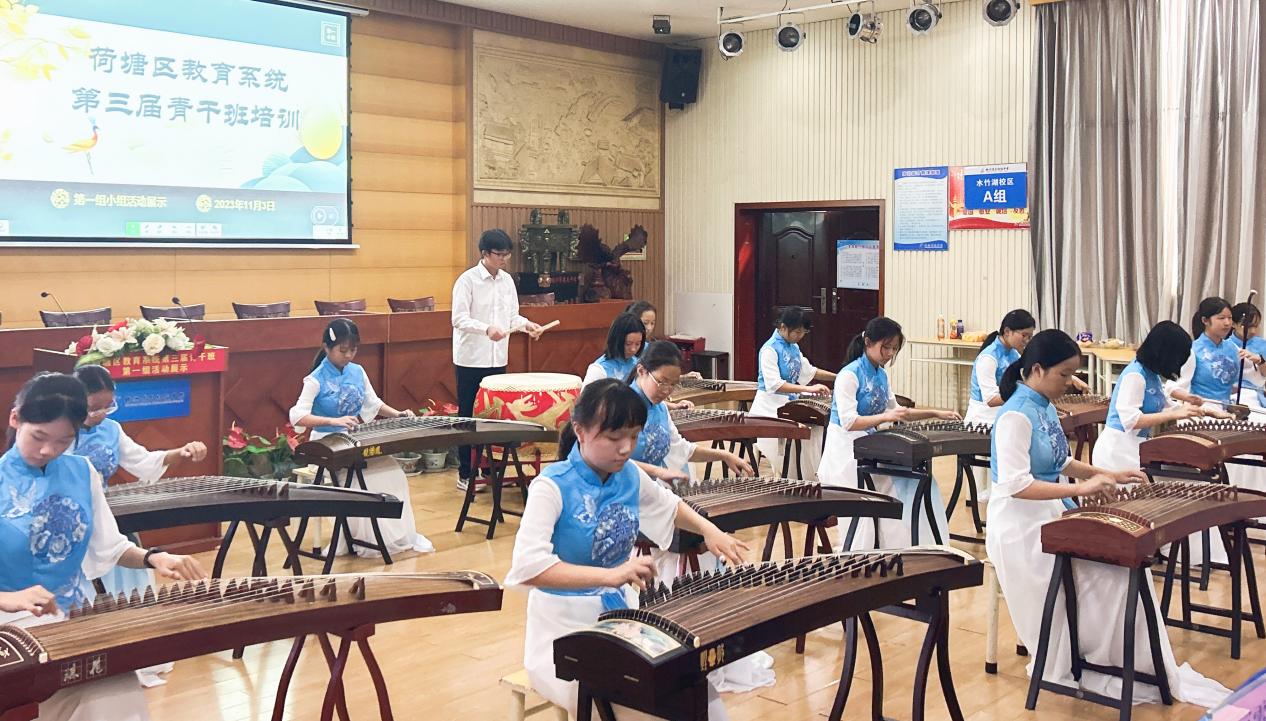"双减" 政策下,如何在课后服务的沃土上绽放五育并举之花? 11月3日,荷塘教育系统青干班第一小组主题展示活动在景炎初级中学多功能厅举行,一场精彩的古筝表演惊艳全场。