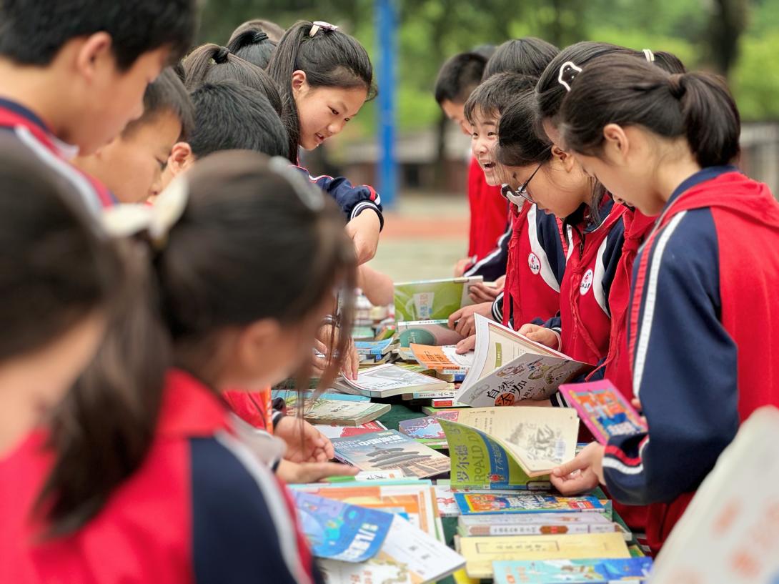 在太阳小学的流动图书车旁,同学们有序排队挑选书籍,时不时和伙伴交流;荷塘小学校门口新华书店里摩肩接踵,这里成为孩子们放学后的好去处;在景炎小学,由社会人士捐赠的水竹书院"华信书屋"里,孩子们享受着阅读的乐趣……一幅幅动人的画面,绘出了美好的书香校园。