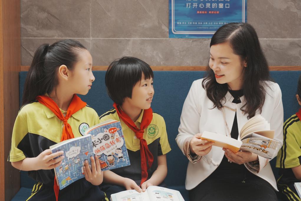 六〇一中英文小学党支部书记、校长周慧珊和孩子们一起阅读