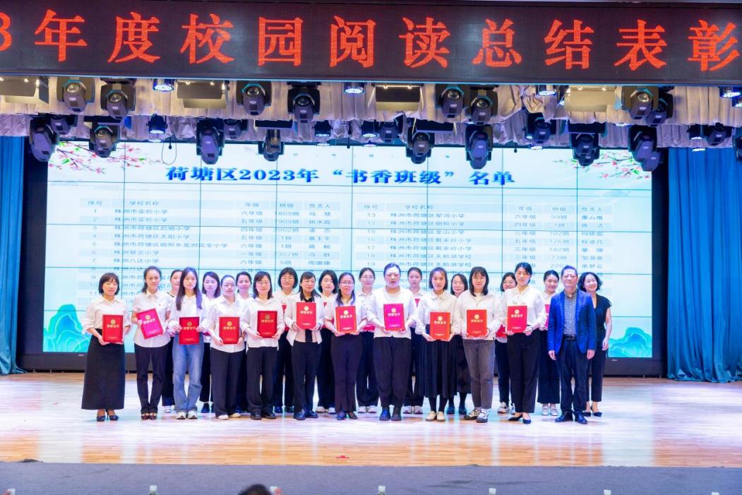 此外,荷塘区各校积极开展阅读小明星、读书小达人、最佳领读者、阅读积分银行等各类展评活动。在2024年"书香荷韵"中小学生读书节启动仪式暨2023年度校园阅读总结表彰大会上,表彰了47名"书香少年",47名"书香教师",46个"书香班级",10个"亲子阅读典范家庭"、8个"书香校园",培养阅读典范和推广达人,共同致力于学校阅读的发展。