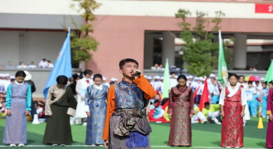 日前,荷塘区中小学2024年第二十七届运动会大幕拉开,在开幕式现场,一群来自遥远雪域高原的孩童,身着藏族盛装,载歌载舞入场,瞬间吸引全场目光,引来阵阵掌声。